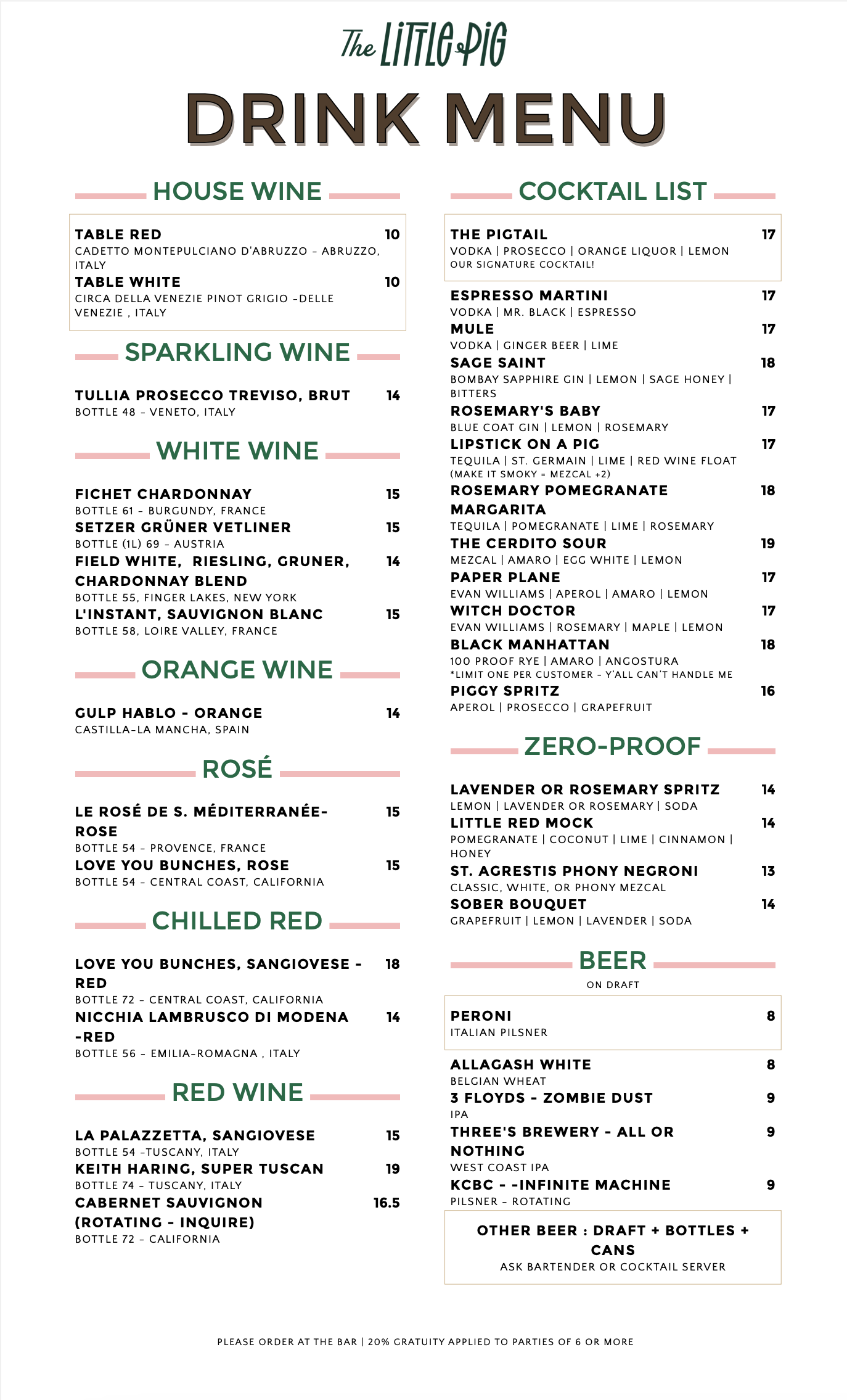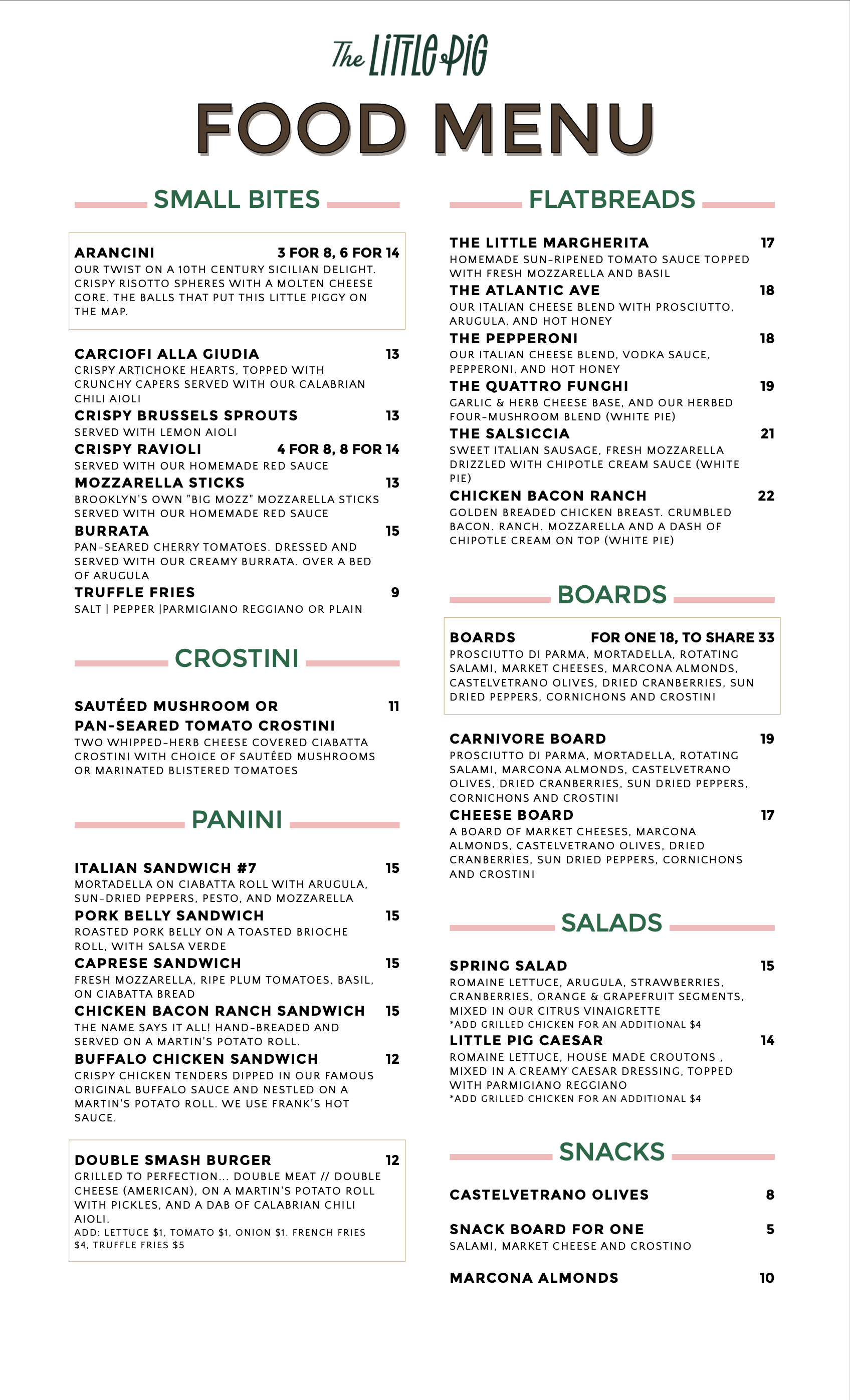 Also if you wish, in this section you can see the menu of the food that you can choose if you come to The little Pig.